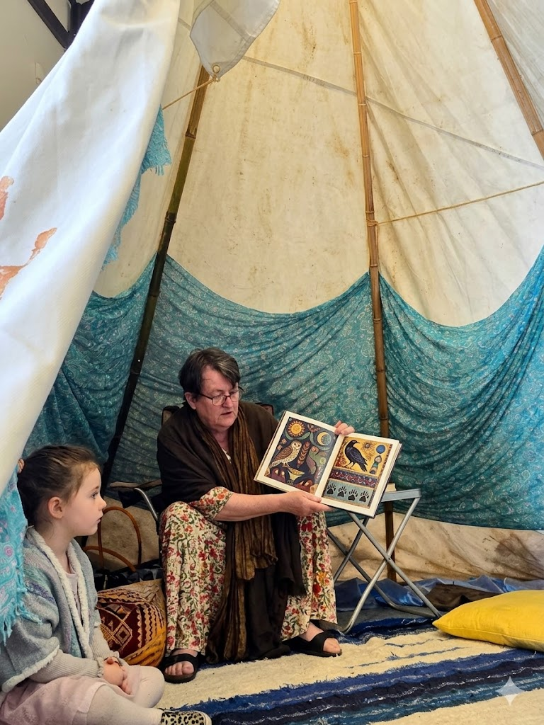 Des contes pour tous : Que vous soyez petit ou grand, toutes les tailles d’oreilles sont les bienvenues sous sa tente.